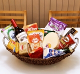 Baú em Palha Artesanal, repleto de deliciosos Chocolates: Kit Kat e variedades de Bombons que fazem a alegria de quem os recebe. Acompanha Trio de Rosas e Chandon Brut ou Rosê,187m